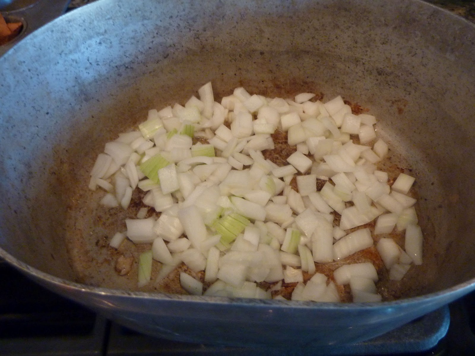 Transfer the chicken to a plate. Add the chopped onion to the pot, and cook until translucent, about 10 minutes.