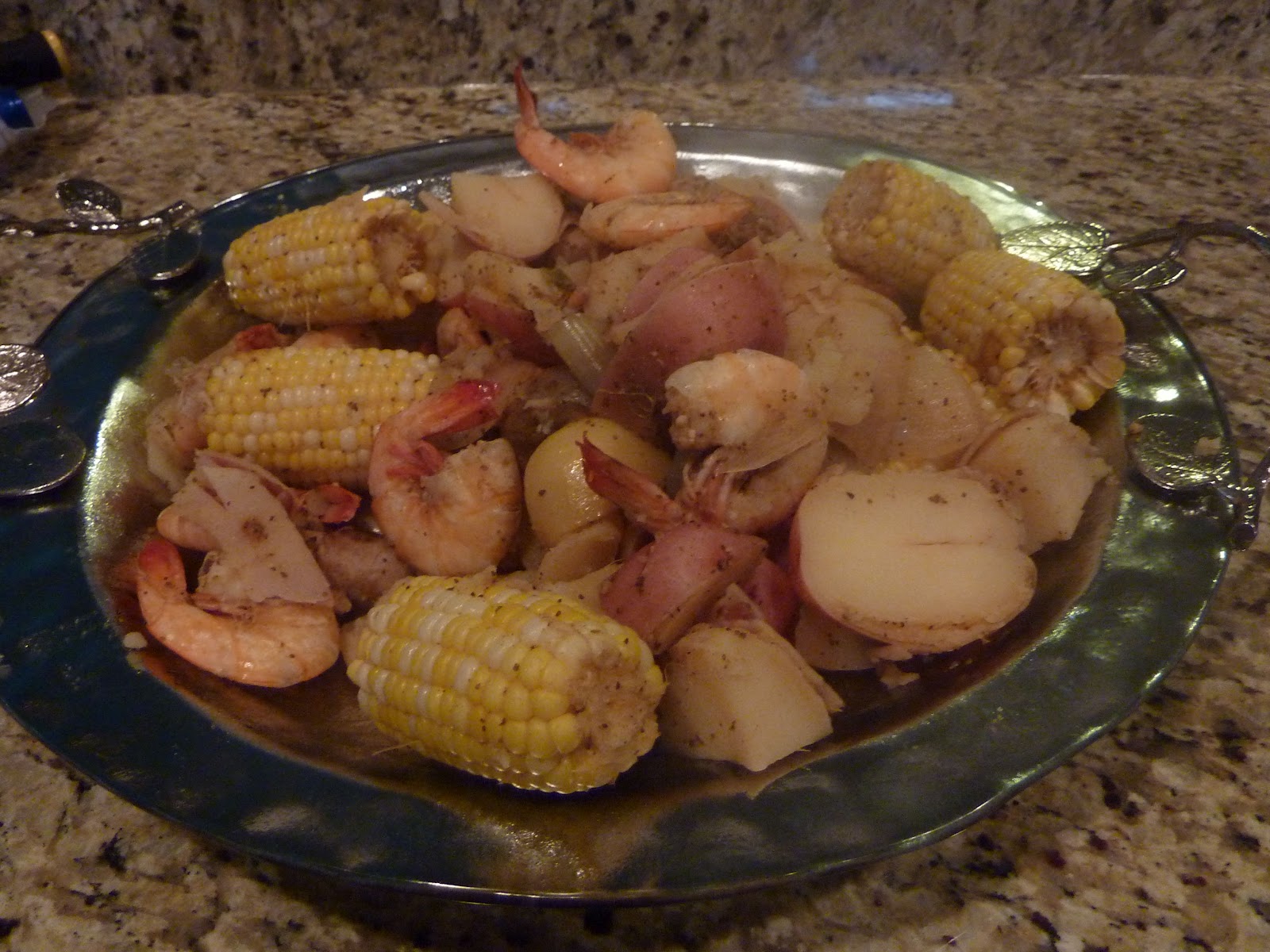 Shrimp Boil! The perfect summertime-dinner-outside-at the cabin meal! Unless of course you are in Texas and it is already 100 degrees so eating outside is no longer an option.